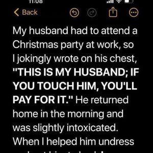 What began as a harmless joke quickly took an unexpected turn. Before my husband left for his work Christmas party, I wrote a playful note on his…